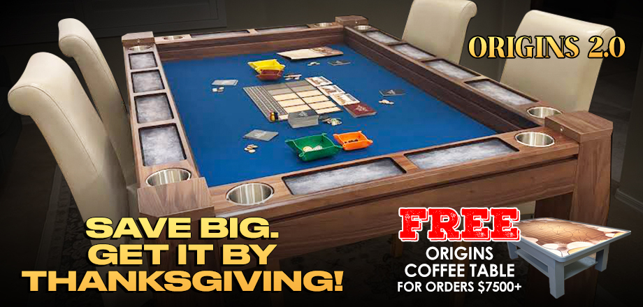 This Black Friday, we’re not just offering the best deal in board game tables — we’re helping you solve the real challenge: getting a premium board game table without the months-long wait. With limited in-stock inventory and our fastest shipping ever, top configurations like the Origins 2.0 and Arena can be at your door in just one week.