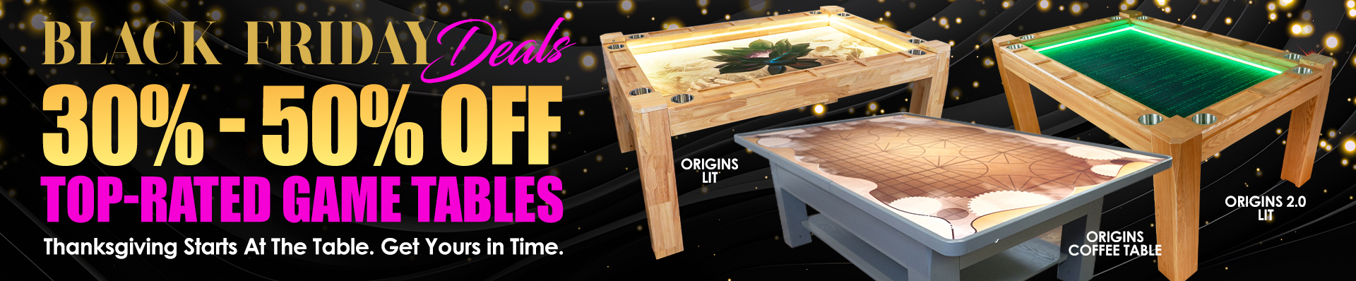 This Black Friday, we’re not just offering the best deal in board game tables — we’re helping you solve the real challenge: getting a premium board game table without the months-long wait. With limited in-stock inventory and our fastest shipping ever, top configurations like the Origins 2.0 and Arena can be at your door in just one week.